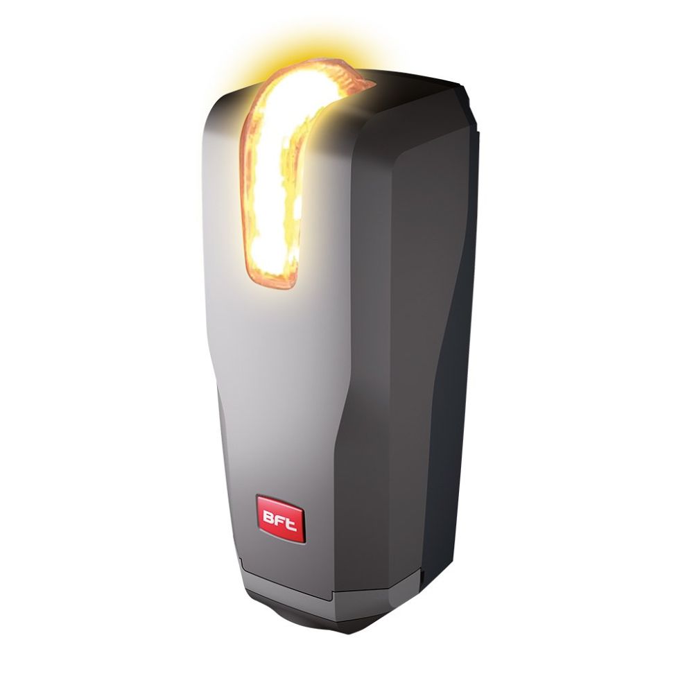 Pair of adjustable hardwired photocells with integrated flashing light and suitable for non-BFT automation systems. Beam can be oriented 40 degrees horizontally and 10 degrees vertically with a range of 30m. Power Supply 24v ac/dc