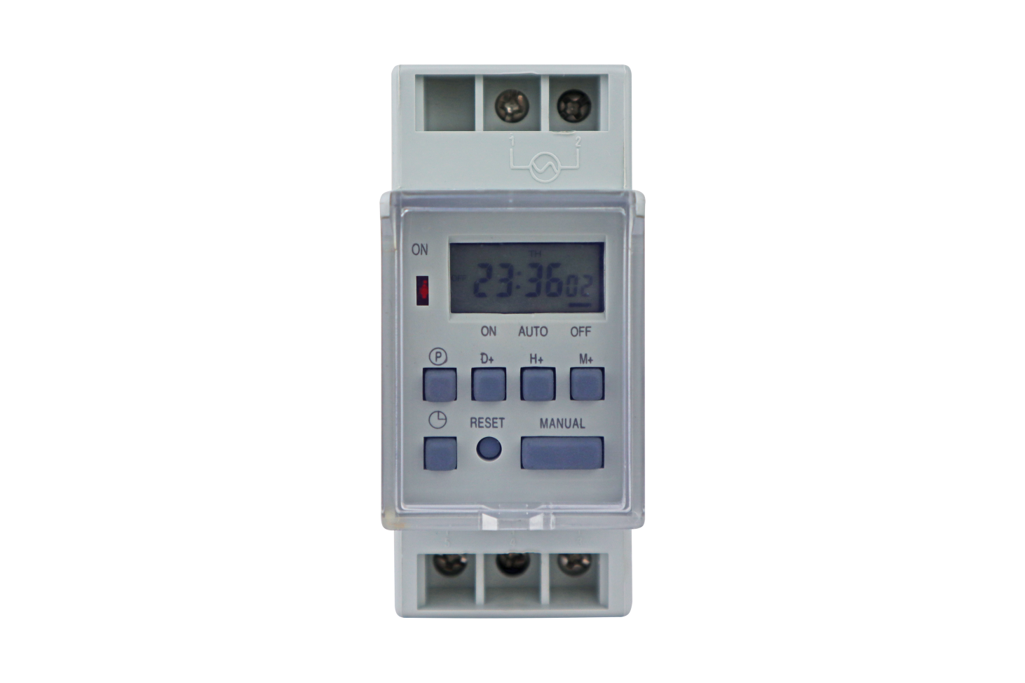 7-day DIN rail mount timer 8 ON/OFF schedules LED indication Battery backup Ideal for "Free Access" unlocking periods