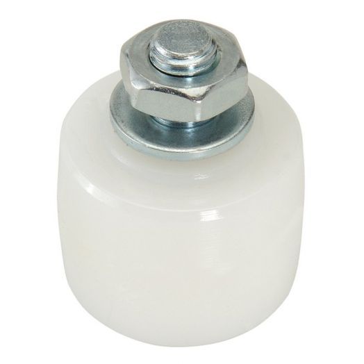 Nylon wheel 40x30 Nylon wheel attached to a M10 threaded bolt. The wheel is 37.5mm diameter with a nominal width of 31.0mm.